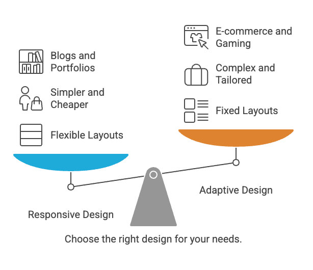 Ideal for: Blogs, small business sites, portfolios. - Adaptive is better for complex apps needing tailored experiences.