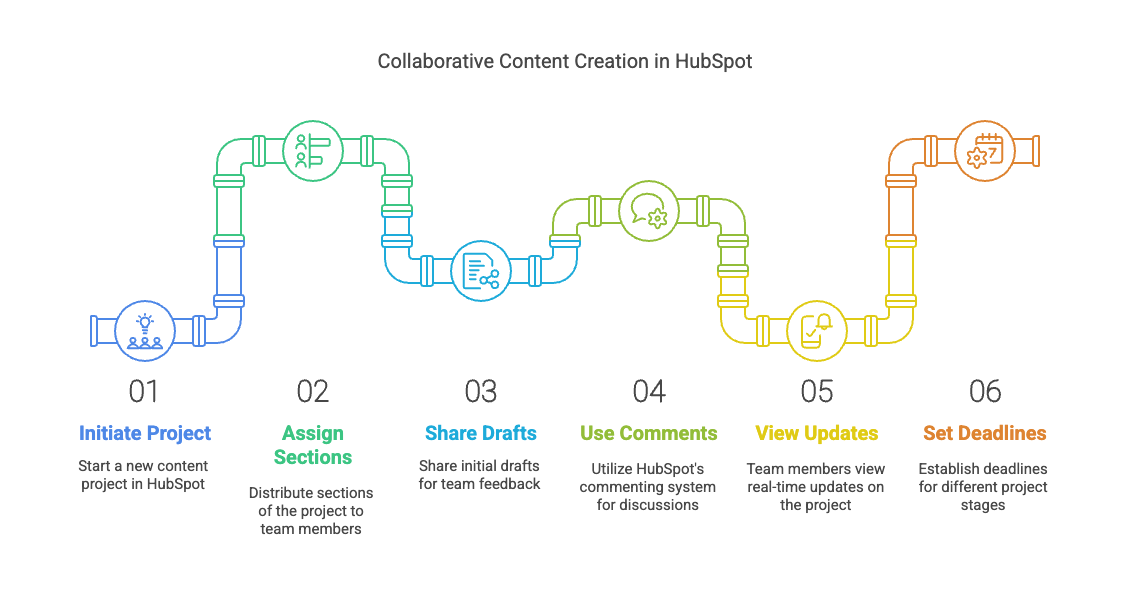 For example, if you’re working on a major content project, like a detailed guide or an eBook, you can assign sections to team members, share drafts for feedback, and use HubSpot’s comments and tagging system to ensure everyone stays aligned. The entire team can see real-time updates and set deadlines for different stages to stay on track. It’s like having a virtual project manager, reminding everyone when tasks are due and keeping the workflow smooth, even across different time zones.
