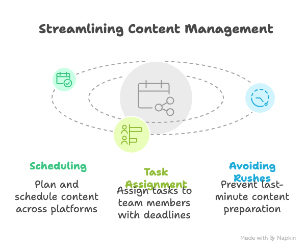 Assign tasks to team members with deadlines to ensure timely content delivery.